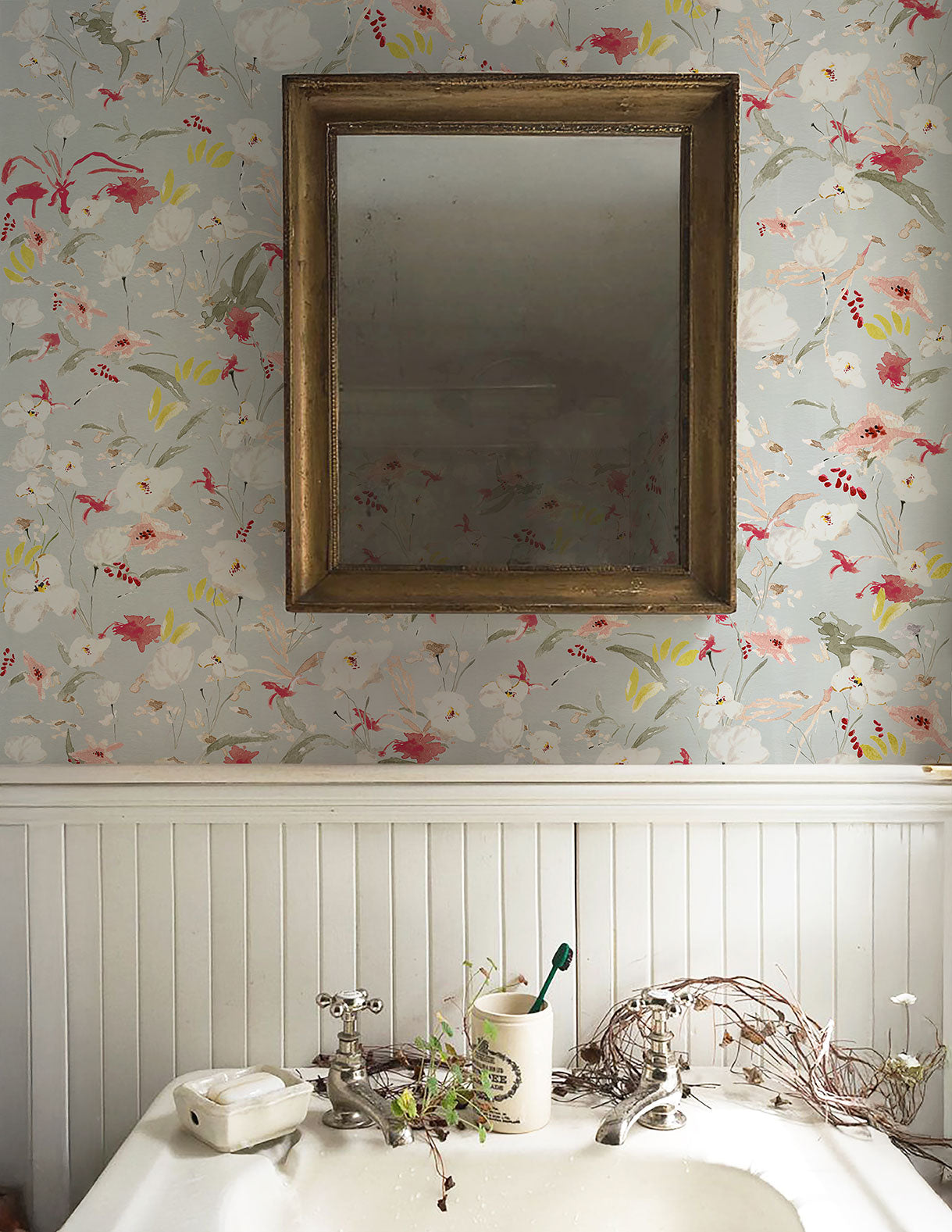 Este papel pintado una colaboración hecha en exclusiva para Be Water Home, diseñado por CarolinaColomba.