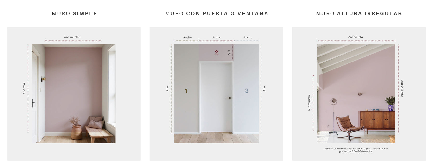 Si vas a empapelar más de un muro: Toma uno como tu punto de partida y mide ancho y alto de cada muro hacia tu derecha, en el sentido del reloj.